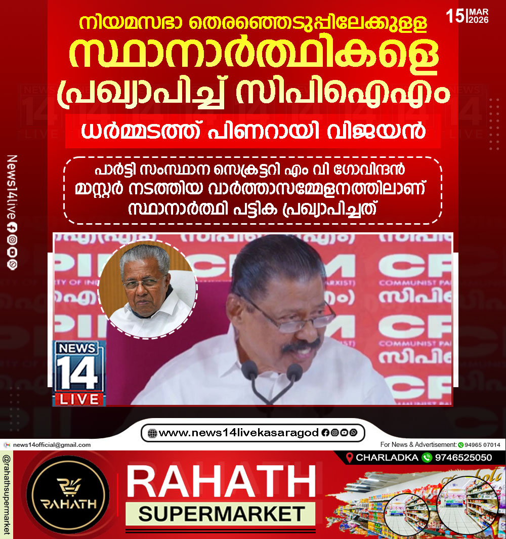 തിരുവനന്തപുരം: നിയമസഭാ തെരഞ്ഞെടുപ്പിലേക്കുളള സ്ഥാനാര്ത്ഥികളെ പ്രഖ്യാപിച്ച് സിപിഐഎം. പാര്ട്ടി സംസ്ഥാന സെക്രട്ടറി എം വി ഗോവിന്ദന് മാസ്റ്റര് നടത്തിയ വാര്ത്താസമ്മേളനത്തിലാണ് സ്ഥാനാര്ത്ഥി പട്ടിക പ്രഖ്യാപിച്ചത്. ധർമ്മടത്ത് മുഖ്യമന്ത്രി…