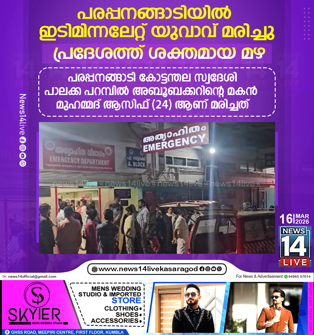 മലപ്പുറം: പരപ്പനങ്ങാടിയില് ഇടിമിന്നലേറ്റ് യുവാവ് മരിച്ചു. പരപ്പനങ്ങാടി കോട്ടന്തല സ്വദേശി പാലക്ക പറമ്പില് അബൂബക്കറിന്റെ മകന് മുഹമ്മദ് ആസിഫ് (24) ആണ് മരിച്ചത്. മൃതദേഹം തിരൂരങ്ങാടി താലൂക്ക്…