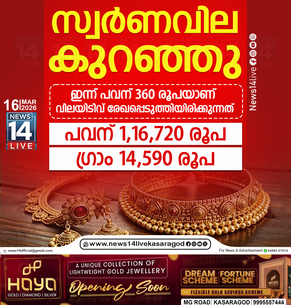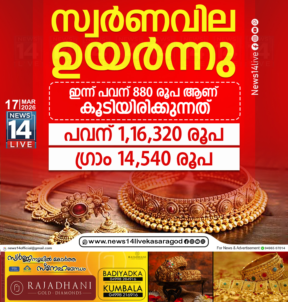 സംസ്ഥാനത്ത് ഇന്ന് സ്വര്ണവിലയില് വര്ധനവ്. അകഴിഞ്ഞ ദിവസങ്ങളില് എല്ലാം താഴേയ്ക്ക് പോയ വിലയില് ആണ് ഇന്ന് വര്ധനവ് ഉണ്ടായിരിക്കുന്നത്. പവന് 880 രൂപ ആണ് കൂടിയിരിക്കുന്നത്. ഇതോടെ…