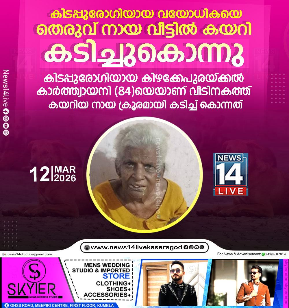 തൃശൂര്: എരുമപ്പെട്ടി വെള്ളറക്കാട് കൊല്ലന്പ്പടിയില് വയോധികയെ തെരുവ് നായ കടിച്ച് കൊന്നു. കിടപ്പുരോഗിയായ കിഴക്കേപുരയ്ക്കല് കാര്ത്ത്യായനി(84)യെയാണ് വീടിനകത്ത് കയറിയ നായ ക്രൂരമായി കടിച്ച് കൊന്നത്. കാര്ത്ത്യായനിയുടെ മാനസിക…