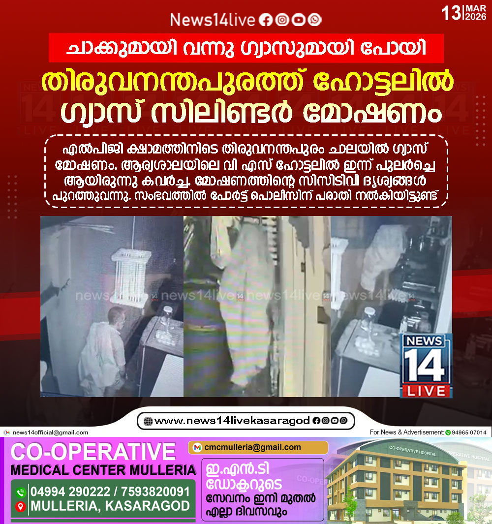 തിരുവനന്തപുരം: എല്പിജി ക്ഷാമത്തിനിടെ തിരുവനന്തപുരം ചാലയില് ഗ്യാസ് മോഷണം. ആര്യശാലയിലെ വി എസ് ഹോട്ടലില് ഇന്ന് പുലര്ച്ചെ ആയിരുന്നു കവര്ച്ച. മോഷണത്തിന്റെ സിസിടിവി ദൃശ്യങ്ങള് പുറത്തുവന്നു. സംഭവത്തില്…