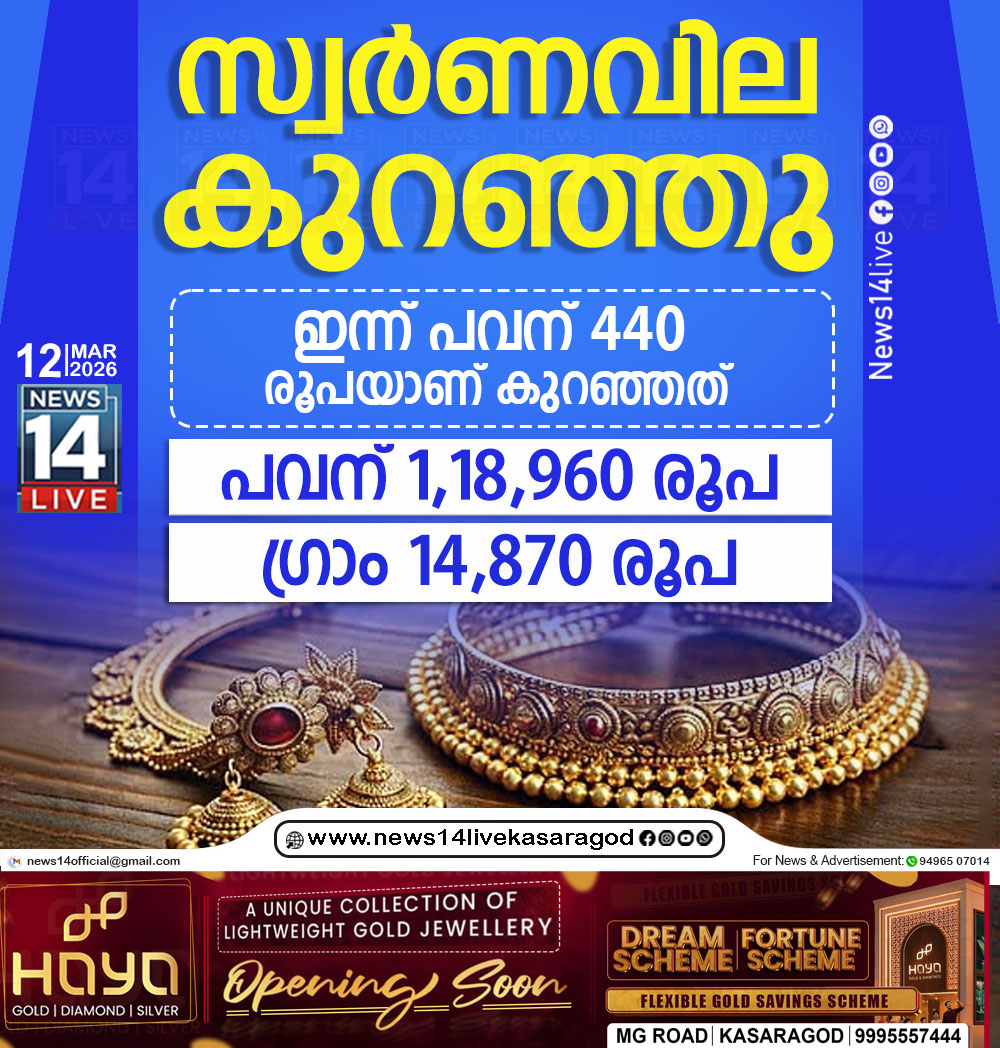 സ്വര്ണ വിലയില് ഇന്ന് വീണ്ടും ഇടിവ്. 22 കാരറ്റ് സ്വര്ണം ഗ്രാമിന് 45 രൂപ കുറഞ്ഞ് 14,870 രൂപയായി. 1,18,960 രൂപയിലാണ് ഇന്ന് 22 കാരറ്റ് ഒരു…