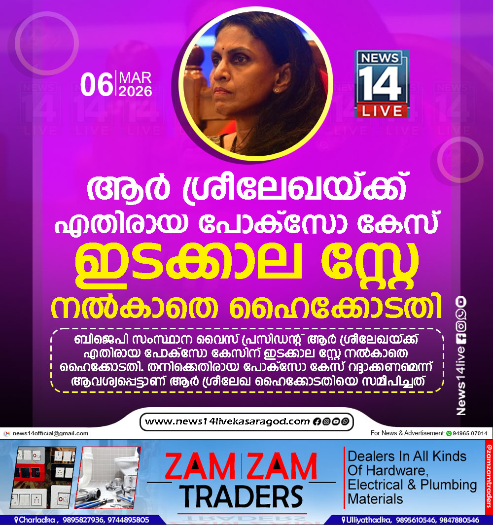 ബിജെപി സംസ്ഥാന വൈസ് പ്രസിഡന്റ് ആര് ശ്രീലേഖയ്ക്ക് എതിരായ പോക്സോ കേസിന് ഇടക്കാല സ്റ്റേ നല്കാതെ ഹൈക്കോടതി. തനിക്കെതിരായ പോക്സോ കേസ് റദ്ദാക്കണമെന്ന് ആവശ്യപ്പെട്ടാണ് ആര് ശ്രീലേഖ…