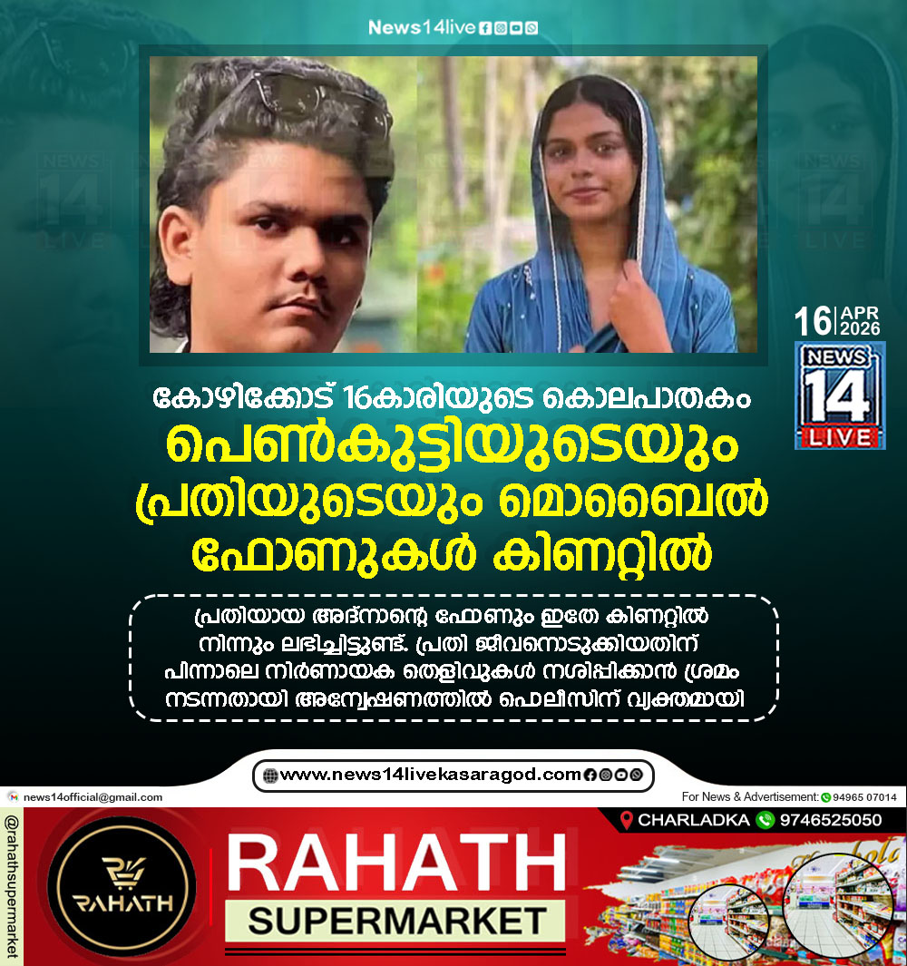 കോഴിക്കോട്: ഈസ്റ്റ് മൂഴിക്കലില് 16കാരി നസ്രീനയെ കൊലപ്പെടുത്തിയ സംഭവത്തില് വഴിത്തിരിവ്. പെണ്കുട്ടിയുടെ രണ്ട് മൊബൈല് ഫോണുകള് വീട്ടിലെ കിണറ്റില് നിന്നും കണ്ടെടുത്തു. പ്രതിയായ അദ്നാന്റെ ഫോണും ഇതേ…