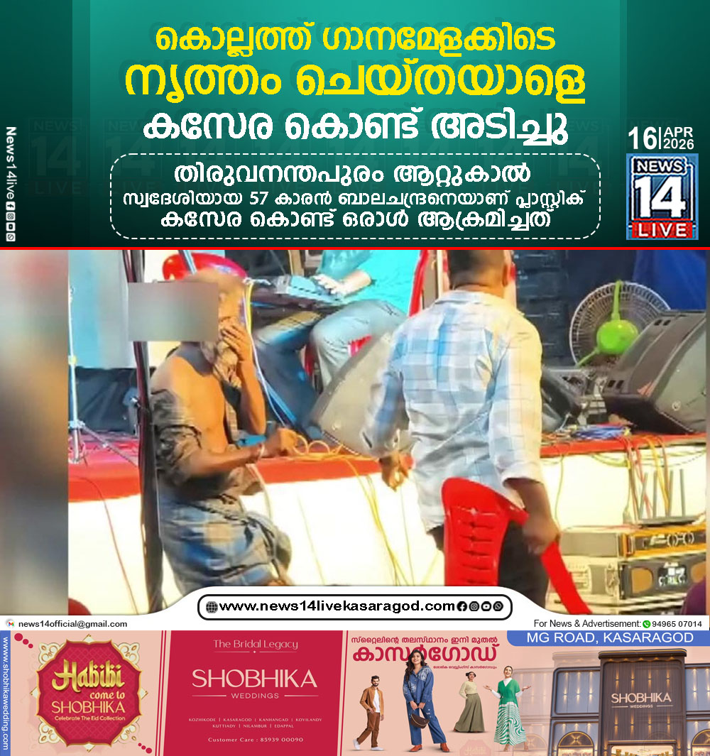 കൊല്ലം: കൊല്ലം ആശ്രമത്ത് ക്ഷേത്രോത്സവത്തിലെ ഗാനമേളക്കിടെ മദ്യപിച്ച് നൃത്തം ചെയ്തയാള്ക്ക് മര്ദ്ദനം. തിരുവനന്തപുരം ആറ്റുകാല് സ്വദേശിയായ 57 കാരന് ബാലചന്ദ്രനെയാണ് പ്ലാസ്റ്റിക് കസേര കൊണ്ട് ഒരാള് ആക്രമിച്ചത്.…