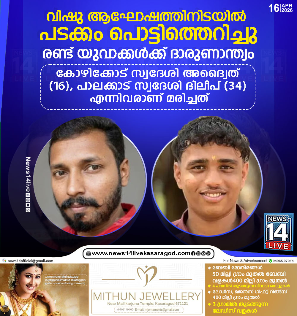 കോഴിക്കോട്: വിഷു ആഘോഷത്തിനിടയില് പടക്കം പൊട്ടിത്തെറിച്ച് 16 കാരന് ദാരുണമായി മരിച്ചു. കൊയിലാണ്ടിയിലെ അദ്വൈതാണ് (16) മരിച്ചത്. കൂട്ടുകാര്ക്കൊപ്പം വിഷു ആഘോഷിക്കുന്നതിനിടയില് അദ്വൈതിന്റെ കൈയിലിരുന്ന ഗുണ്ട് പൊട്ടിത്തെറിക്കുകയായിരുന്നുവെന്നു…