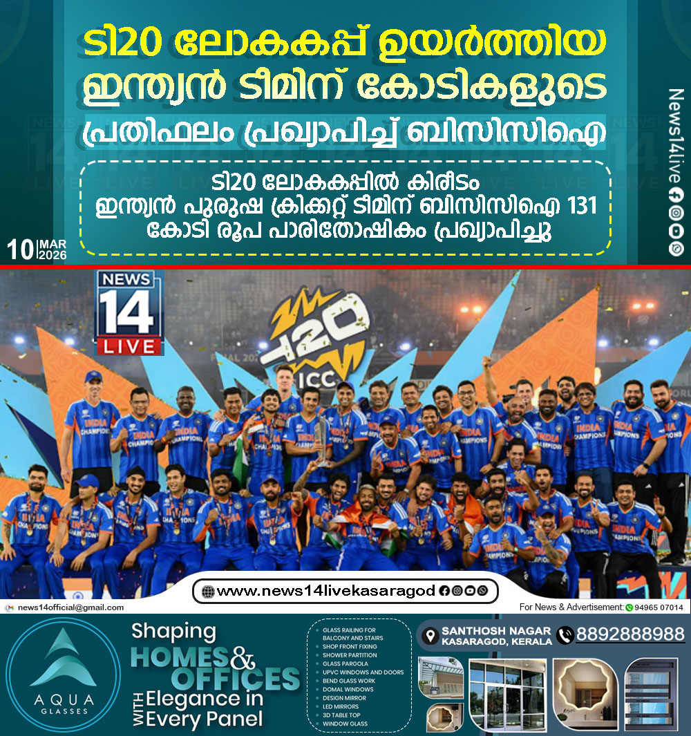 അഹമ്മദാബാദ്: ടി20 ലോകകപ്പില് തുടര്ച്ചയായ രണ്ടാം തവണയും കിരീടം ചൂടി ചരിത്രം കുറിച്ച ഇന്ത്യന് പുരുഷ ടീമിന് ബിസിസിഐ 131 കോടി രൂപ പാരിതോഷികം പ്രഖ്യാപിച്ചു. അഹമ്മദാബാദിലെ…