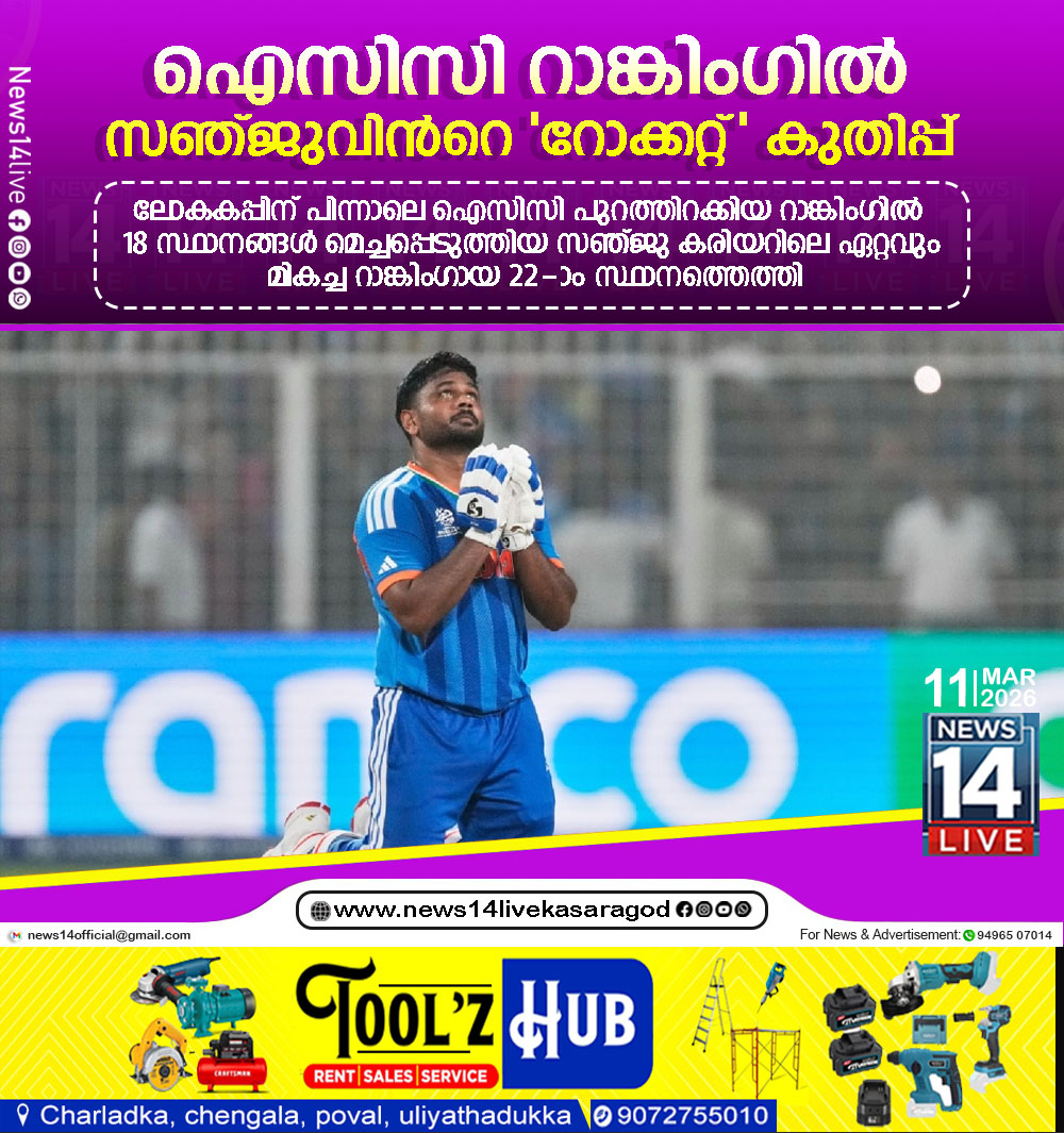 ദുബായ്: ടി20 ലോകകപ്പിലെ മിന്നും പ്രകടനത്തിന് പിന്നാലെ ഐസിസി ടി20 ബാറ്റിംഗ് റാങ്കിംഗിലും കുതിച്ച് മലയാളി താരം സഞ്ജു സാംസണ്. ലോകകപ്പിന് പിന്നാലെ ഐസിസി പുറത്തിറക്കിയ റാങ്കിംഗില്…