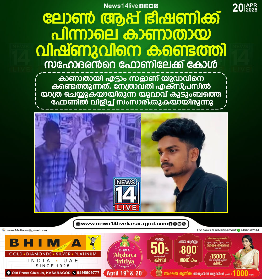 കോഴിക്കോട്: ലോണ് ആപ്പ് ഭീഷണിക്ക് പിന്നാലെ കാണാതായ കോഴിക്കോട് സ്വദേശി വിഷ്ണുവിനെ പയ്യന്നൂര് റെയില്വേ സ്റ്റേഷനില് നിന്നും കണ്ടെത്തി. കാണാതായി എട്ടാം നാളാണ് യുവാവിനെ കണ്ടെത്തുന്നത്. നേത്രാവതി…