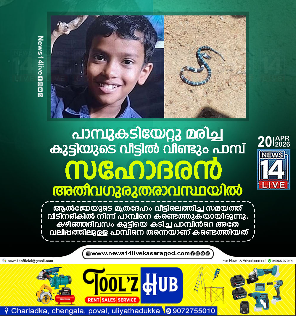 തൃശ്ശൂര് കോടാലിയില് പാമ്പുകടിയേറ്റ് മരിച്ച കുട്ടിയുടെ വീട്ടില് വീണ്ടും പാമ്പിനെ കണ്ടെത്തി. ആല്ജോയുടെ മൃതദേഹം വീട്ടിലെത്തിച്ച സമയത്ത് വീടിനരികില് നിന്ന് പാമ്പിനെ കണ്ടെത്തുകയായിരുന്നു. കഴിഞ്ഞദിവസം കുട്ടിയെ കടിച്ച…