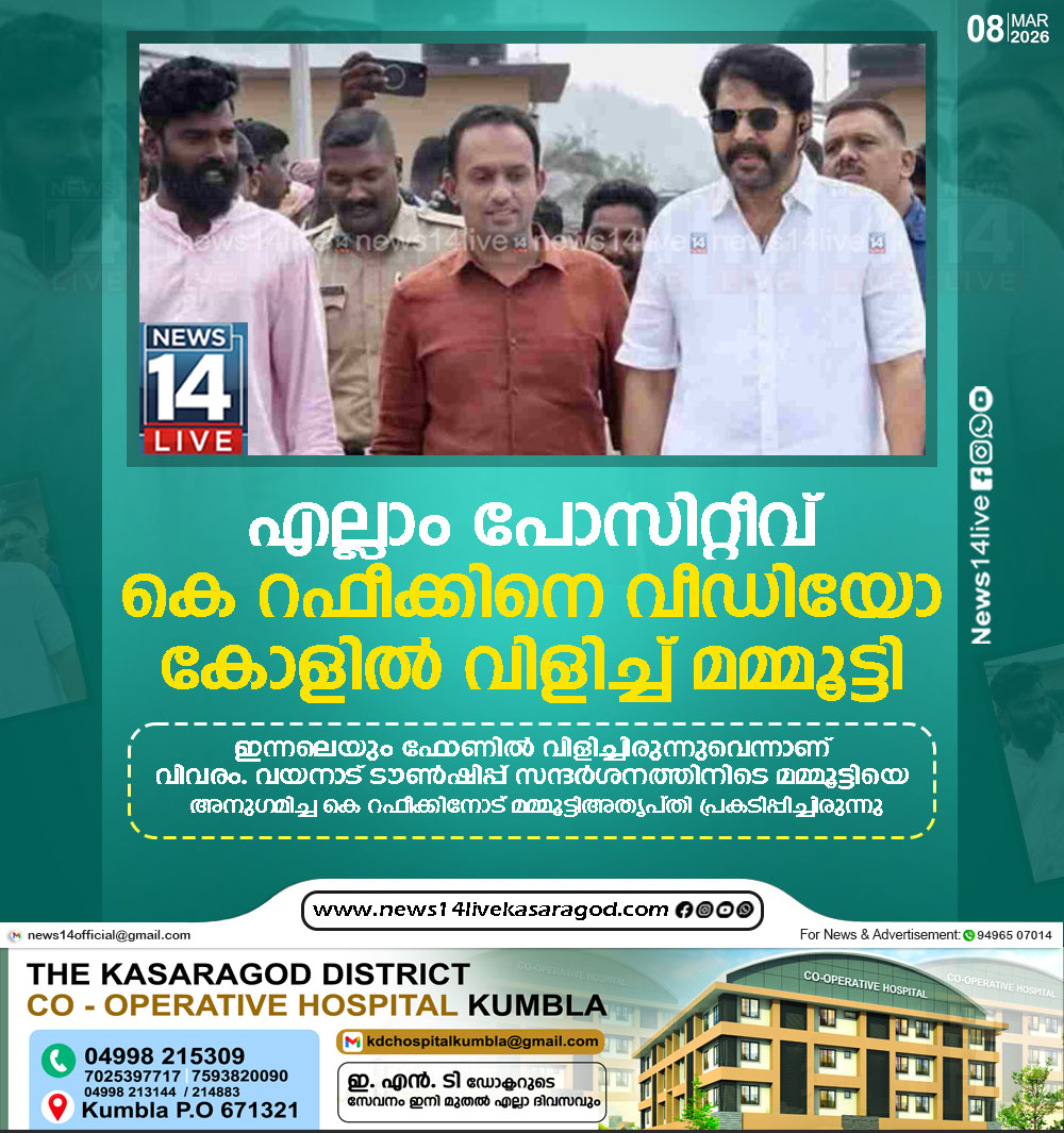 കൊച്ചി: വിവാദത്തിനിടെ സിപിഐഎം വയനാട് ജില്ലാ സെക്രട്ടറി കെ റഫീക്കിനെ ഫോണില് വിളിച്ച് മമ്മൂട്ടി. വീഡിയോ കോളില് വിളിച്ച് സംസാരിക്കുകയായിരുന്നു. ഇന്നലെയും ഫോണില് വിളിച്ചിരുന്നുവെന്നാണ് വിവരം. വയനാട്…