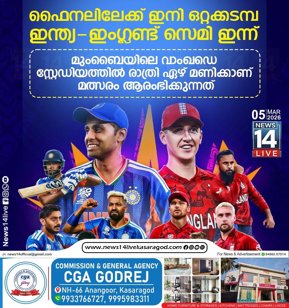 2026 ടി20 ലോകകപ്പില് ഇന്ന് ക്രിക്കറ്റ് ലോകം ആകാംഷയോടെ കാത്തിരിക്കുന്ന ഇന്ത്യ-ഇംഗ്ലണ്ട് സെമി ഫൈനല് പോരാട്ടം. മുംബൈയിലെ വാംഖഡെ സ്റ്റേഡിയത്തില് രാത്രി ഏഴ് മണിക്കാണ് മത്സരം ആരംഭിക്കുന്നത്.…